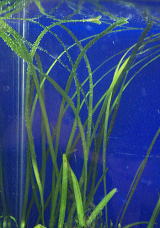 特徴:根茎水草。葉は深緑〜黄緑で柔らかく長い糸状になります。シペルスに比べると繊細さでは劣りますが、力強い印象をもちます。ただのスピラリスは大きくなる上、葉幅が広く小型水槽に向きませんが、小型種のナナは葉が細く、繊細さがやや増し小型レイアウト水槽でも使えます。どちらにしろ草丈が高くなるので、水深の浅い小型水槽には向いていません。36cm以上の水深があればなんとか見せることができるでしょう。ナナはスピラリスよりも成長がやや遅いです