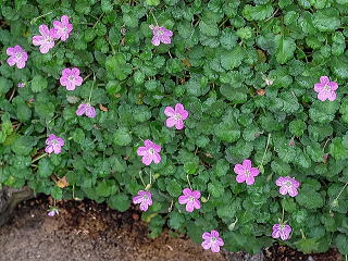 近縁種。和名のヒメフウロは異なる花ですが、園芸で単にヒメフウロといえば本種を指すことが多いです。写真の交雑種のピンク花「ロゼウム」がよく出回っています。小さな株に、小さな花を咲かせます。