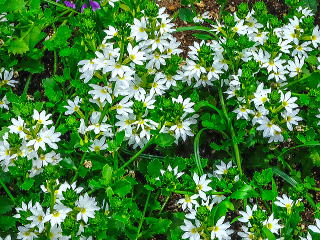花は短い花穂に円状につきます。花つきは良好で、雨に当てなければ花もちも優れています。葉は小さめで鋸歯が目立ちます。株は横に広がるように伸び草丈は高くなりません。