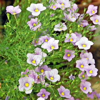 薄青紫花を咲かせますが、改良品種には青紫や白などの花色があります。葉や茎は線状で繊細な印象ですが、性質は丈夫で暑さにも比較的よく耐えます。