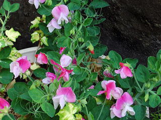 おなじみの花ですが品種や系統、花色がたくさんあり奥の深い花です。ツルがよく伸びる高性の品種が一般的ですが、鉢植え向きの矮性品種も人気があります。また別種ですが宿根スイートピーが少ないながらも出回っています。花色は派手な赤や青、淡いピンクや白など豊富に揃いますが、矮性のものは花色が限られています。スイートの名前の通り花には淡い芳香があります。株はマメ科らしい糸状のツルがあり、葉も広楕円形でいかにもマメ科な感じです。そのためやや個性的な印象ですが、意外と他の春〜初夏の花とも相性がよいのは改良に歴史があるからでしょうか?