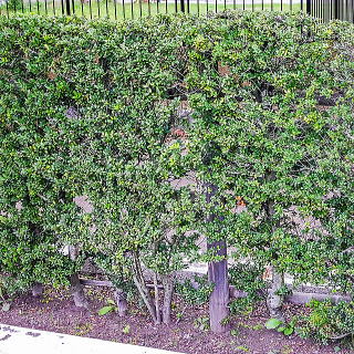 日陰に耐えるので、北側の生垣や境栽などに向きます。生垣は整然として硬めな感じに仕上がります。風通しのない場所では枝が枯れこみやすいので、ブロック塀沿いなどにはあまり向きません。