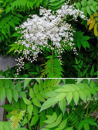 落葉小高木。ニワナナカマドに似ていますが、雄しべがさらによく伸びて、花が全体的にモコモコとした雰囲気になるのが特徴。花を見れば一目瞭然ですが、花のない時期に両者を区別するのは困難。ニワナナカマドに比べ暑さに弱く、暖地よりも寒冷地向きの樹木です